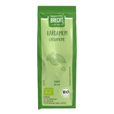 Wer an Kardamom denkt, denkt oft an Weihnachten. Doch die grünen Kapseln können mehr: sie verfeinern Currygerichte, Brot und arabischen Kaffee. Kardamom gehört zur Familie der Ingwergewächse und die Samen werden aus den Kapseln einer tropischen Schilfpflanze gewonnen. Brecht Kardamom kommt aus den tropischen Regionen Guatemalas und wird in unserer eigenen Mühle in Eggenstein kaltvermahlen.